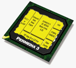 米3Dlabs社は、2D/3Dグラフィックアクセラレーターチップ『PERMEDIA 3』を発表した。0.25μmプロセス技術で製造され、パッケージは456ピンのBGA(Ball