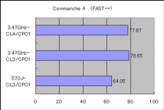 | 3DMark 2001SEの結果。棒が長い方が高速。 | Commanche 4の結果。棒が長い方が高速。 | |