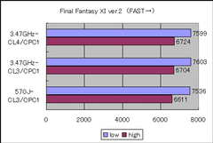 | 3DMark 03の結果。棒が長い方が高速。 | Final Fantasy XI ver.2の結果。棒が長い方が高速。 | |