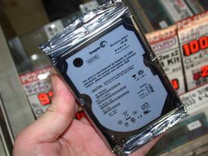 ここしばらくHDDの容量増大は緩やかな傾向にあるが、その状況を打ち破る可能性も持つ新技術“垂直磁気記録”を採用した2.5インチHDDがSeagateから登場した。シリーズ名は“Momentus 5400.3”で、2.5インチHDDとしては最大容量となる160GBモデルから登場。今回店頭で見られたのはUltraATAタイプの「ST9160821A」で価格は4万円前後から。