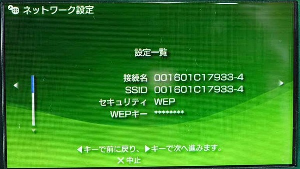 この画面まで来れば、設定自体は終了だ。×ボタンを押して設定を終了させよう。トータルで2分近くかかるので、一見手間のように思えるが、手順に従ってボタンを押していくだけで、パスワードなどを入力する必要はない。iPod touchのように文字列を自分で入力する手間を考えたらはるかに簡単だ。