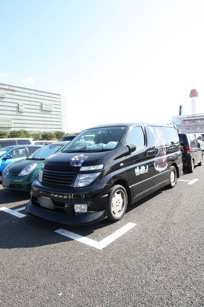 エアロが厳つい黒のエルグランドは、「けいおん!」の澪がモチーフ。カッコよく仕上がってます!
