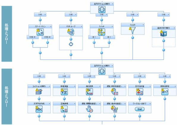80個近い部品が標準で用意されており、コードを書くことなく、ブロックを組み立てるようにロジックを組み上げることができる。SharePoint外部との連携を行なう部品も数多く用意されており、たとえば人事系DBから承認者(上司)の情報を取得することも簡単にできる。さらに、必要であれば、部品を自社用にカスタムで開発して、それをワークフローの中で一部品として使うこともできるので、仮に標準部品で対応できないような特殊なニーズがあっても対応できる。