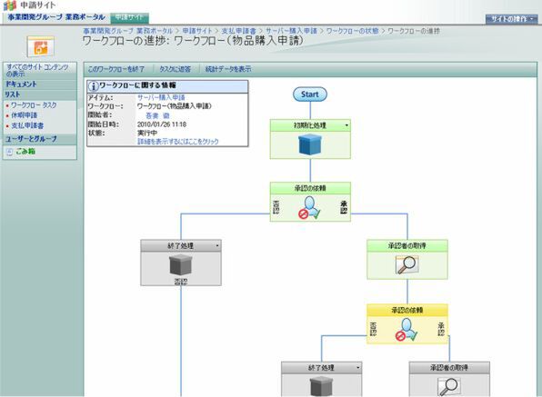 このようにNintex Workflowを利用すれば、SharePointの機能と機能を連携させたシステムワークフローを作れる。さらに「上司の承認」といったヒューマンワークフローを組み合わせて、SharePoint上に1つの業務アプリケーションをコーディングすることなく簡単に作成できる。