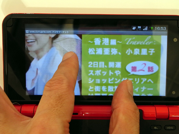 ウェブブラウザーは、タッチ操作やヒンジ部のトラックボールでスムーズにスクロールできる。ピンチイン/アウトやダブルタップでのズームにも対応。iPhoneほどスムーズではないが、キビキビと動作していた。