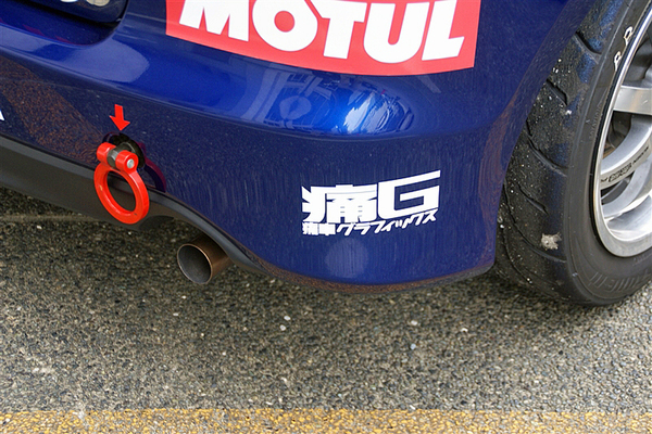 ルーフも抜かりない。恐らく、レース中ではお目にかからないかもしれないが、グランドスタンドなどの高いところから観戦すれば、このイラストが拝めるぞ。なお、このプロジェクトには痛車グラフィックスも協力しており、リアバンバーにさりげなくロゴが貼られている