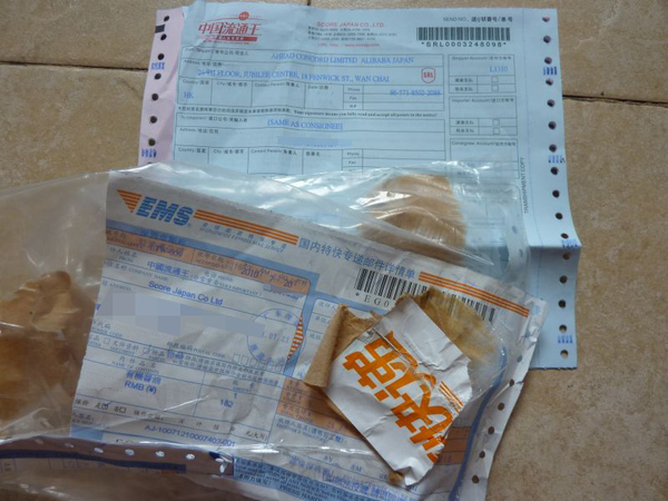 香港にある中国流通王(Score Japan)という日系企業から、EMSで配送されていた。配送料は26元(約350円)。EMSなので当然配送番号を教えてもらえれば追跡もできようが、それすらないというのは購入者に失礼であり、サービス改良の余地ありと感じた。