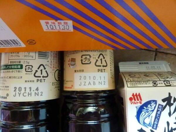 なんのことかと聞いてみれば、醤油の1本が2010年11月に賞味期限切れとなっていて、これが問題だという。他のものについては賞味期限は2011年までとなっている。ひとつ、賞味期限が近いモノが入っているのがよろしくないのだ。