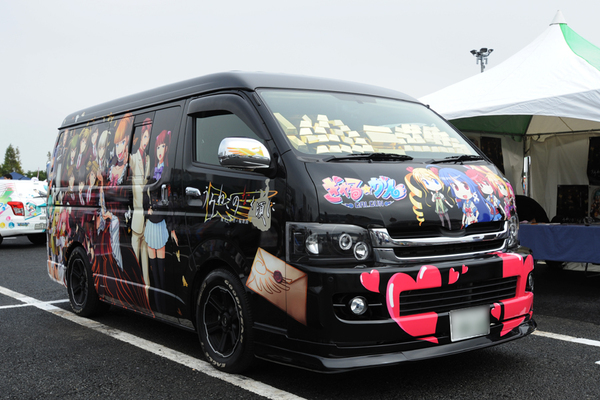 右の側面は「うみねこのなく頃に」、左の側面は「ぎゃるかん」という陰と陽、明と暗が真っ二つのトヨタ ハイエース。東京ゲームショウでは過激な演出で話題をさらったが、今回の痛Gふぇすたではそれらの演出がなく、ちょっと残念……。