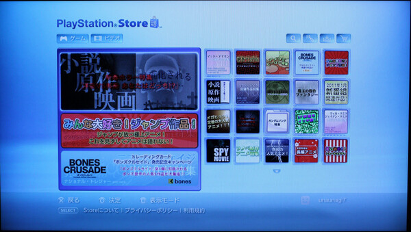 PS3を持っているなら、ソニーのオンラインサービス「PSストア」を使ってみよう。ハリウッドメジャーや日本のアニメなど1500タイトル(合計5000エピソード以上、2010年12月時点)のラインアップを揃えている。ストリーミング再生に加えて、視聴制限のないセル方式も選べる。操作画面は見慣れたPS3のインターフェースで、レスポンスも良好だ。
