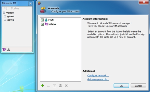 マルチアカウントに対応した「Miranda IM Portable」