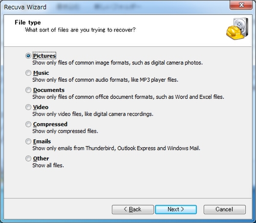 USBメモリーで持ち運べるデータ復元ソフト。インストールは不要で、WebページからZIPファイルをダウンロードしたら、USBメモリー内に展開するだけで使えるようになる。プログラム本体をダブルクリックして起動したらウィザード画面に従い、画像やメールなど救出したいファイルの種類を選択。次にスキャンするドライブやフォルダーを指定すればいい。