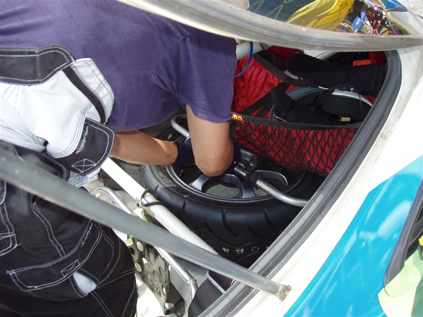 準備を終えたMRCサービスブース。実は今、チームブースのレベルアップ計画が進行中で、新しいサービスシステムが最終戦の新城でお目見え予定。Twitterで協力を要請したところ、多くのファンの方々から色々な機材を提供していただいた。皆さん本当にありがとうございます!