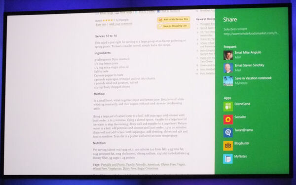 いかにも最新のOSらしい機能が、コンテンツやアプリデータを簡単に他者と共有できる機能だ。例えば見ている画像やウェブページのリンクといったものを、OSが用意する統一されたUIから、各種ソーシャルサービスなどを使って共有する
