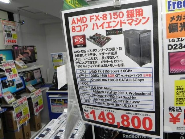 正式発表後も発売時期が未定というAMDの8コアCPU「FX-8150」。一部店舗では組み込み済みPCという条件付きながら「FX-8150」パソコンが販売中だ。