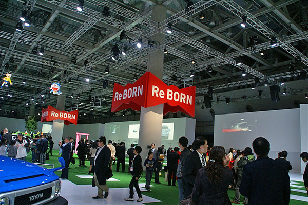 Rebornというコンセプトを掲げ、20年後のドラえもんたちが出迎えてくれるトヨタブース。会場の中でも最大規模だ