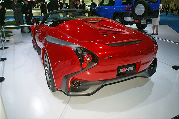 スタイリングが特徴的な、オープンミッドシップ・ハイブリッド「GRMN SPORTS HYBRID Concept II」。フロントをモーター駆動させる、4WDスポーツハイブリッドシステムを搭載している