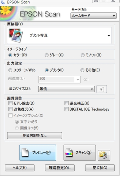 全自動モードは初心者向けなのだが、以降で紹介する「DIGITAL ICE」が使用できないため、古い写真をキレイにしたいという場合には不向き。ホームモードは、全自動モードに近く、細かい設定も不要でありながら各種補正機能を活かせるという、良いとこ取りのモードだ。まずはこのホームモードから触ってみるといいだろう。