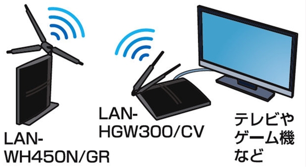有線LAN対応機器を無線化「LAN-HGW300/CV」