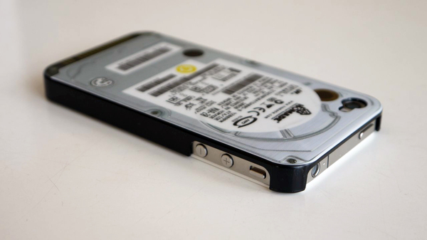 最近、HDDのミニチュアのようなUSBメモリーを常時携帯している筆者は、一緒に持ち歩くと楽しそうで、自慢できるケータイケースを探していた。そんなとき、Webショップで見つけたのが、FLASHBACKSの“ハードディスク・デザインのiPhoneケース”だった。よく見ると本物とは違うが、HDDの表面に貼り付けられたシール上に記述されたモデル名や注意事項、ジャンパー結線図、バーコードなどが極めてリアリティーを感じる仕様だ。