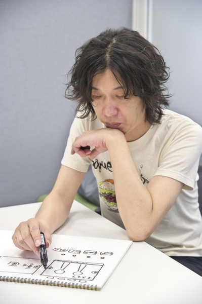 「まだ何も考えてないんですけどね~」と言いながらも、超真剣にラフを切っていくキャプミラさん。10分ほどしてできあがったラフにあわせ、「適当にかっこいいやつ選べばいいんですか?」とテンプレートを選んでいく。