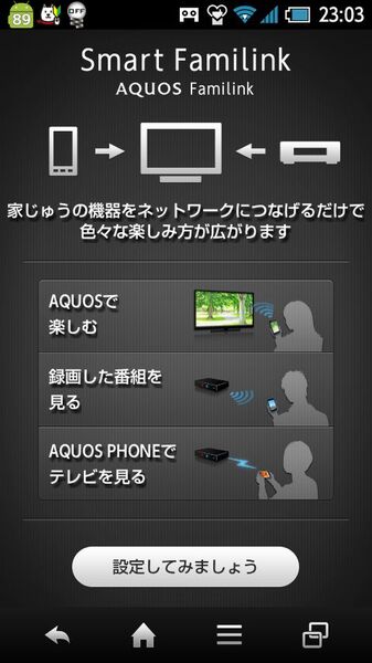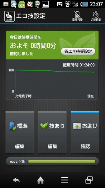 他のシャープらしいアプリとしては家電連携のスマートファミリンク、省エネのエコ技を搭載。キャリア系のアプリとしてファイルストレージ用の「Yahoo!ボックス」(無料で5GB、Yahoo!プレミアム会員やYahoo!BB会員は無料で50GB)があるほか、オフィスアプリに「Documents ToGo」があるものの、これはフルバージョンではないため新規作成や編集を有効にするには別途キーの購入が必要だ。