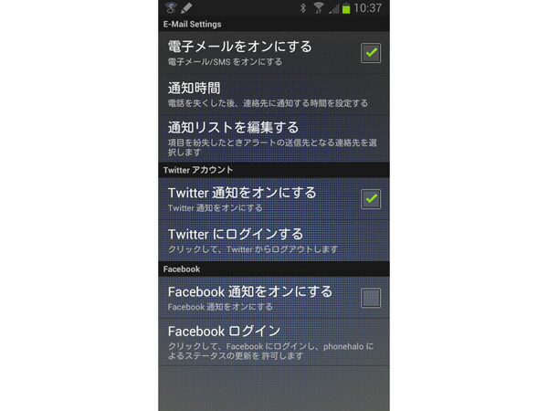 スマホをどこかに忘れて遠くへ移動してしまったとか、スマホは携帯しているが、Cobra Tagを取り付けた鞄をどこかに置き忘れてしまったといった場合には、Cobra TagとスマホのBluetooth接続が途絶えた地図上の場所(マップ座標)を、GoogleメールやTwitterアカウント、Facebookアカウントに送ってくれるよう設定が可能だ。通知を受け取れるのが自分だけでいいならメールに送信し、友人や知人にヘルプを求めるなら、SNSの利用もありえるだろう。