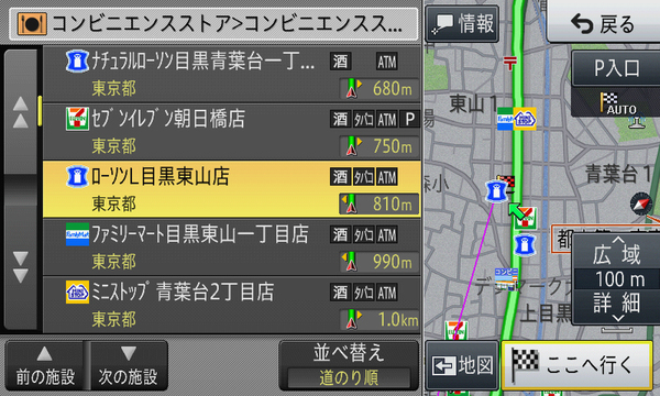 ナビのルート探索機能も大幅に強化された。アイコンによって、コンビニやガソリンスタンドなどが営業中かそうでないかが一目でわかるようになって、さらにお店の住所や電話番号といった情報も表示できる。検索履歴に応じて「よく行くランキング」、AV情報と地図を同時に表示できる「AVサイドビュー」、渋滞予測ルート探索対応など、サイバーナビとはまた違うハイスペックだ。地図データは2012年の秋バージョンと最新。3年分の地図更新が無料で行なえるのもうれしい。渋滞情報に関してはFM-VICSが内蔵されているが、別売りのデータ通信用モジュールを接続すればスマートループが使えるようになる。