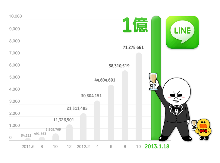 NHN Japanは1月18日、同社が運営する無料通話・無料メールスマートフォンアプリ「LINE」の登録ユーザー数が、18日時点で世界1億人を突破したと発表した。