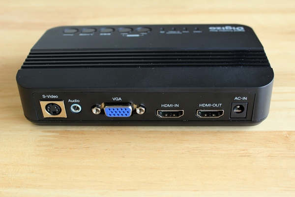 さて、フロント面にあるHDMI端子にタブレット端末やスマートフォンをつなぎ、それらに保存したデータを、気軽に大画面で楽しめるのは確認できた。となれば、つぎは背面に配置されたHDMI端子(リア)、ミニD-Sub端子、コンポジット端子またはS端子のチェックだ。