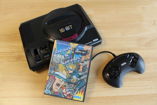 つぎはメガドライブだ。ディスプレーに出力する映像をコンポジットに合わせ、メガドライブにカセットをセットして電源オン! 懐かしの起動音“セ~ガ~”を聞き、ゲームのデモが流れはじまる。プレイするゲームは、一部のユーザーからのカルト的な人気を誇ったアクションRPG「レンタヒーロー」だ。