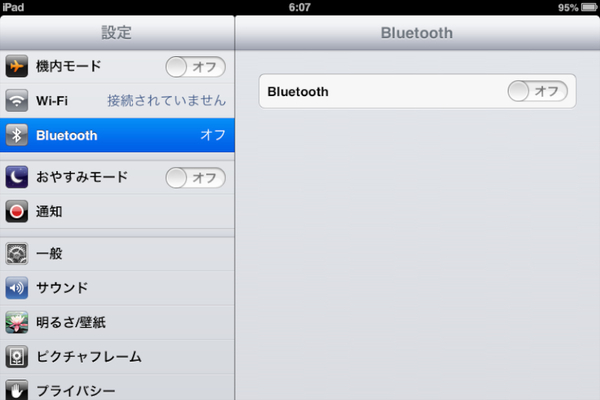 iPhone/iPadを使って休止状態のAtermWM3800Rをリモート起動させる場合は、iOSの「設定」にある「Bluetooth」を利用する。手順は、掲載した画面写真の通りだ(確認作業はiPad miniで行なった)。