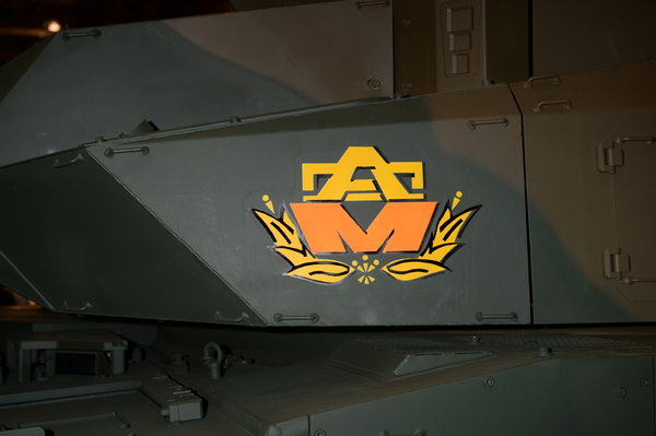 展示されている10式のスペックは、全長9.4m、全幅3.2m、全高2.3m、重量44トン。乗員は、車長、砲撃手、操縦士の3人乗りで、搭載する水冷4サイクル8気筒ディーゼルエンジンによって最高時速70kmで走行となっている。