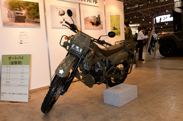 また、本日、明日の2日間ともに12時30分からブースでは「10式戦車開発者によるトークショー」が行われる予定。また、10式戦車以外にも高機動車や偵察用オートバイの展示も実施していた。