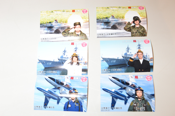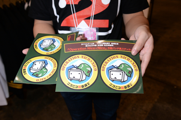 今回のブース出展を記念して同盟軍である日本に駐留する米陸軍と共同作戦「Operation Nico× Nico」を展開。自衛隊・在日米陸軍の両ブースを来場した1万名(各日5000名)に、Operation Nico× Nicoへの参加証となる作戦パッチ風ステッカー(2枚1組)のプレゼントも実施していた。海上自衛隊では、ヘリ搭載型護衛艦ひゅうがの模型展示を、航空自衛隊では戦闘機のパイロットスーツやヘルメットの展示などを行なっていた。