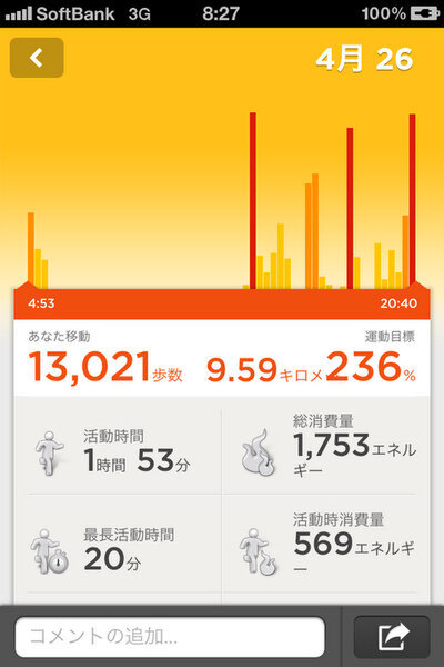 正しく言えば、目標とする一日の歩数や、睡眠時間の設定はあります。ですが、睡眠時間は努力して到達するものでもないし、歩数も当たり前に生活した結果出てくる値。だから普通に生活をしていて、自分がどう活動しているかを客観的にモニターするだけ。それにどのような意味を感じるかは、個々によって違うはずです。