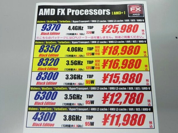 TDP 220Wに到達するモンスターCPU「FX-9370」がAMDから登場、4日(金)から複数ショップで販売がスタートする。