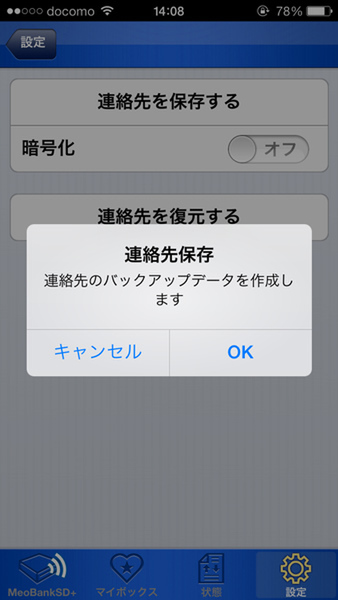 最近ようやく予約したiPhone 5sが届いたんです。いままで使っていたiPhone 5から機種変更するんですが、心配なのは電話帳。5から5sへデータ移行するときに何かあって電話帳データが消えてしまったら、仕事に支障が生じるのは必至です。そこで活用したのがMeoBankSD Plus。iPhone用アプリには電話帳バックアップ機能があるので、iPhone 5でいったんデータをバックアップしたので、安心して機種変更に臨めました。