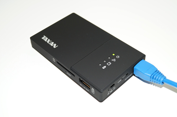 出張で地方に行ったとき、ホテルに有線LAN端子しかないことも少なくありません。そんなとき、Ethernet端子を搭載するPCなら問題ありませんが、搭載しないUltrabookや暇つぶしに持ってきた携帯ゲーム機などはネット接続できなくて困りものです。スマホやタブレットもできればWi-Fiで接続したい……ということでこの「MeoBankSD Plus」を出張のお伴に。LANケーブルを接続すればWi-Fiアクセスポイントとして使えるので、PCもスマホもゲーム機も、まとめてWi-Fi接続できて快適に過ごせます。