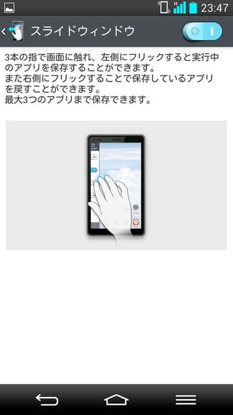 このように、便利な機能が多く用意されているが、まずはスライドウィンドウとQスライドで、マルチタスク環境に慣れると、G2 L-01Fの使いこなしの第一歩になるだろう。