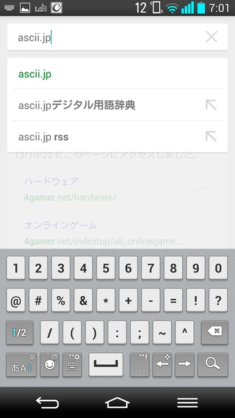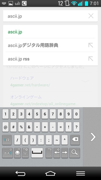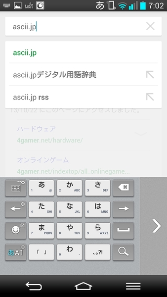 細かい部分を見てみるとキーボードがユニークだ。左右いずれかに寄ったモードが用意されており、片手持ちでの入力を想定している。日本語入力プログラムはLG製のもので、カーソルキーがあるなど使い勝手はけっこういい。辞書がやや貧弱な印象だが、そのあたりはマッシュルームで対応するのがいいだろう。
