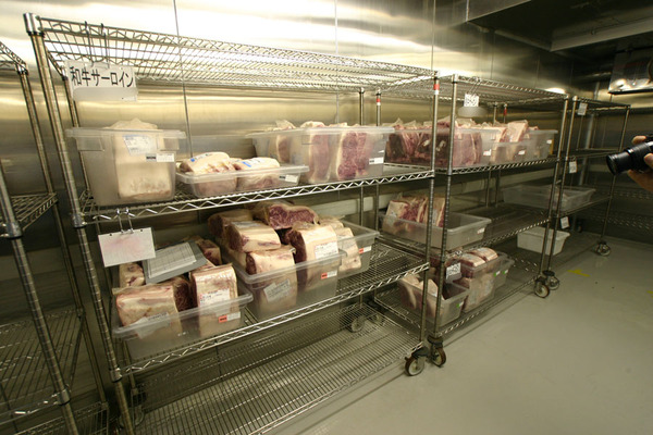 スーパーで売ってるフィレ肉の価格を見れば分かるとおり、牛フィレ肉は希少な(およそ3%)部位。なので国内のフィレ肉を大量に買い込んでいたときもあったという。しかしメニューが変わった今でも、フィレ・サーロインともに品薄で全国から買い付けている。納入後は、安全検査をしてから、肉専用の冷蔵庫で保管するそうだ。