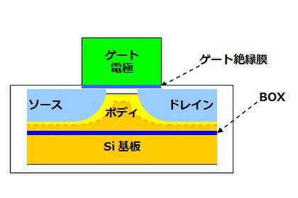 こうなると、ソースやドレインの周囲に空乏層が発生してしまうため、FD-SOIに比べると部分的に浮遊容量が構成されてしまう。厄介なのは、BOX層がある関係でその特性がやや変則的になることで、そのため浮遊容量を逃がす仕組みが別途必要になる。