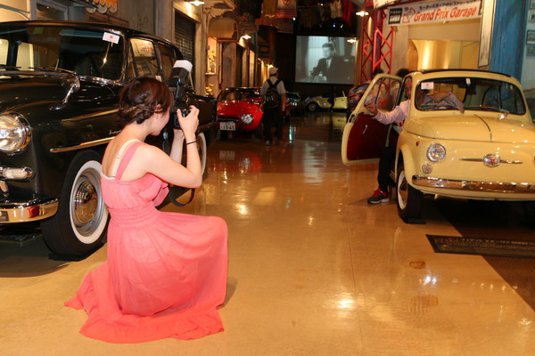 これは、「クラシックカー美女撮影会@ヒストリーガレージ」というイベントで、学生が企画・運営するプロジェクト【車×学生=MEGA PARTY 2014】のひとつとして開催されたもの。なんと美女カメラマンが、参加者をヒストリックカー、クラシックカーとともに撮影してくれるというイベントなのだ。美女とクルマを撮影するイベントではないことに注意してほしい。