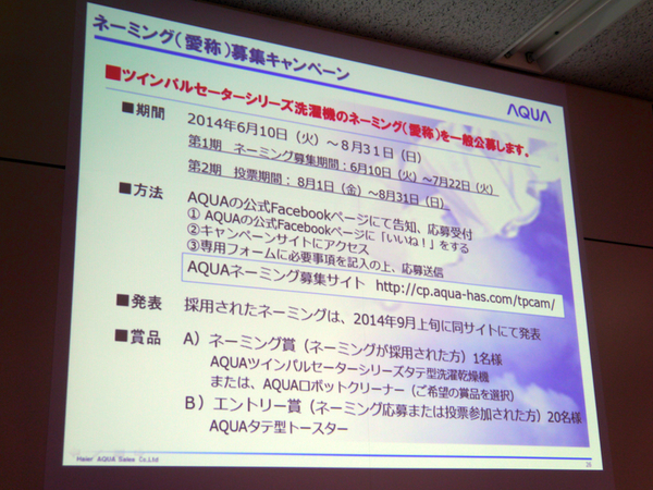 正式ネーミング(愛称)を考案した人には、同製品あるいは同社のロボットクリーナー「AQC-RB100C」をプレゼントするという。