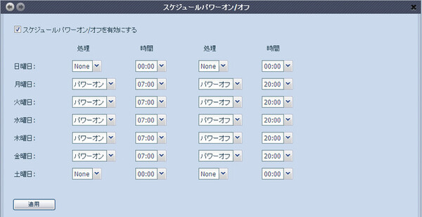 また、NASは基本的に24時間365日稼働するものなので、電気代を抑えるために消費電力は小さいほうがよい。NSR-MS2シリーズの消費電力(定格)は12.4~13.3ワット(モデルにより異なる)となっており、これも同クラスのNASとしては省電力な設計と言える。タイマー設定によって本体電源を自動オン/オフする機能もあり、休日や夜間は稼働させない設定にすれば、さらに消費電力を抑えることができる。