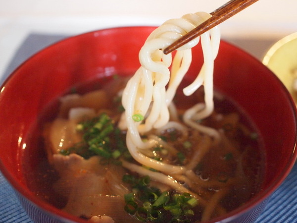 食べてみると、もっちもちのつるっつる。麺の表面に冷汁がからんで、とてもおいしい。実は、「うどんは包丁で切るほうがおいしそう。ヌードルメーカーみたいな“搾り出し式”ってどうなんだろう」と疑っていたのだが、むしろプラスに働いているように思う