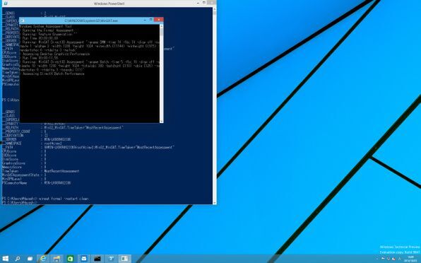 Windows 10でも同様にこっそり生存しているのかと思い、WinSAT.exeを実行してみたところ、計測が開始された。ただスコアはうまく表示されない状態になっており、製品版に近づく段階で姿を消してしまいそうである。