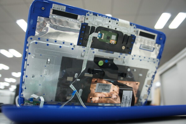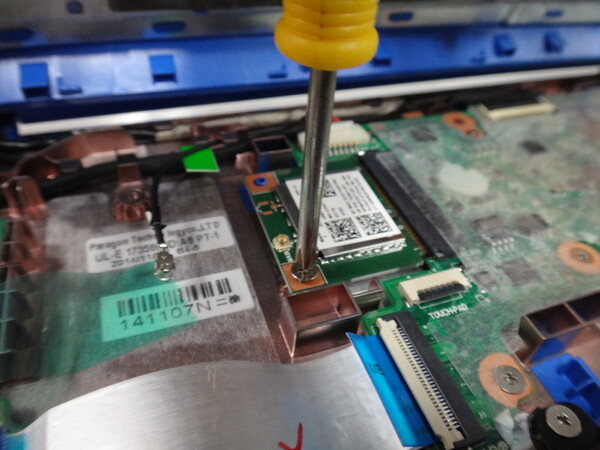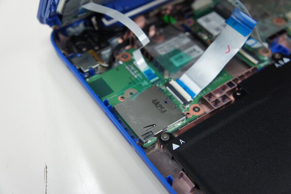 内部の撮影はさておき、目的のmSATAスロットを探そう。しかしどこをどうイジっていいのか分からず、再びベテラン編集者Kさんに助けを求めてみる。Kさんはとある箇所を指差し「コレを外して、スロットを空けるんだよ」という。言われるがままに“コレ”を外す作業に取り掛かった。