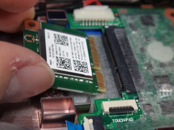 めでたくmSATAスロットが空いたわけだが、知識豊富な読者はもうお気づきだろう。先ほど取り外した“コレ”は「Stream 11-d000」で無線LANを利用するためのもの。これがなければ、クラウドサービスの利用を前提としたノートPCで無線LANが利用できないのだ。